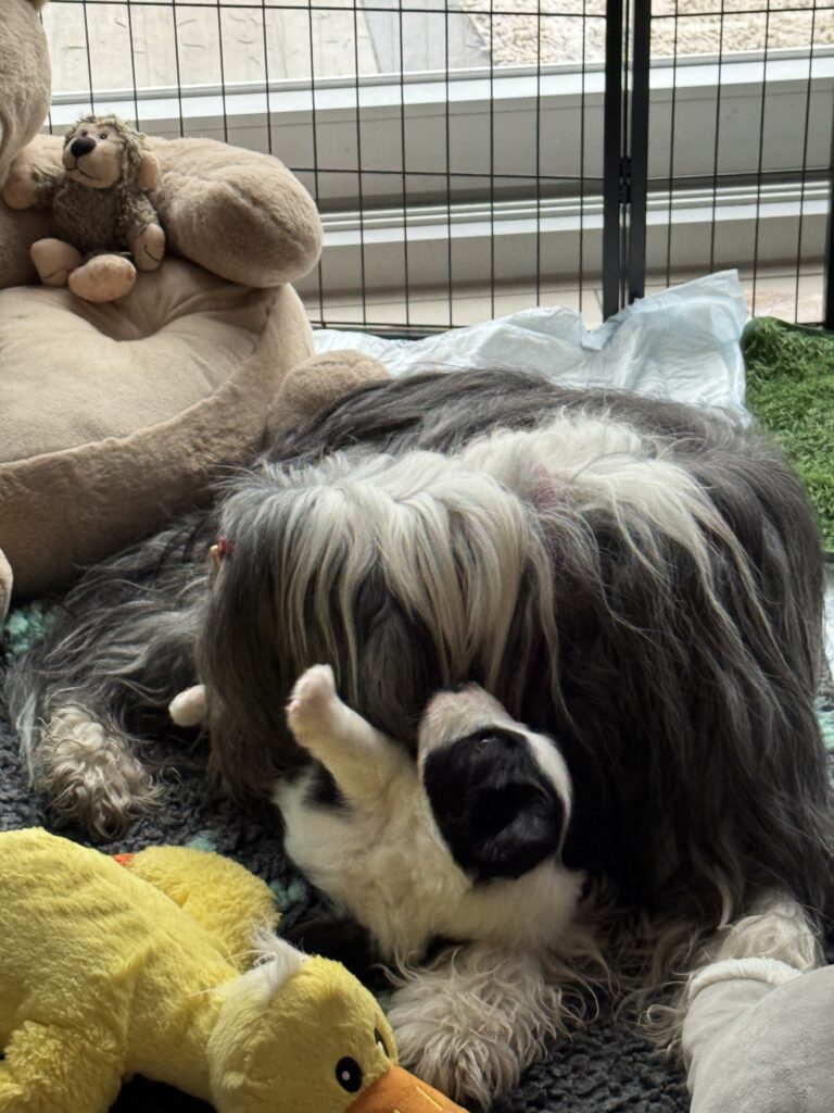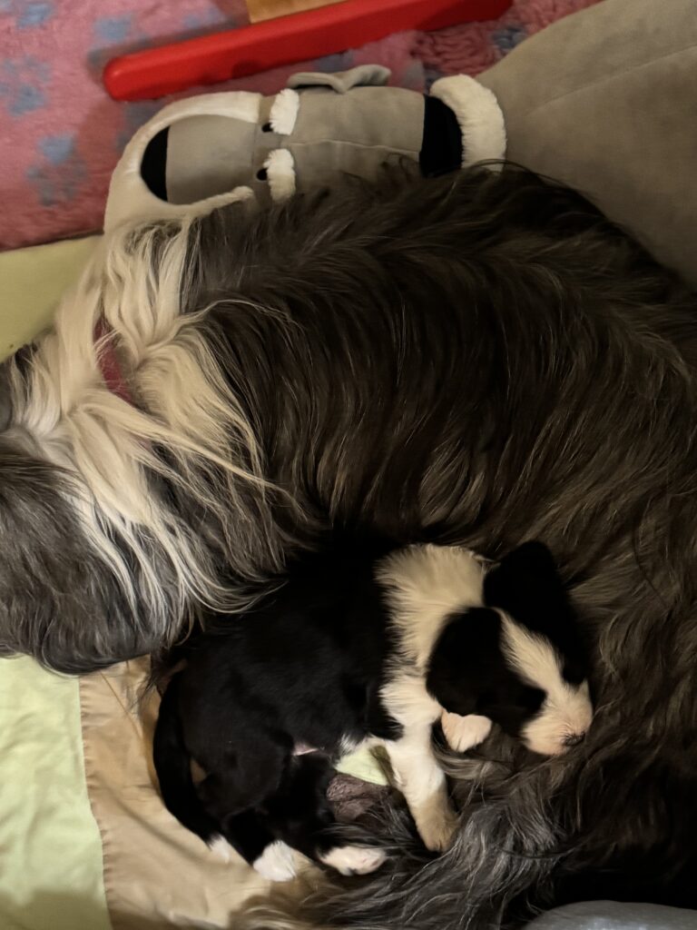 Am 06.11.2025 ist unsere Bommbinis Prinzessin Paulina als Welpe von Bommbinis Candice Crashed Our Heart und X´perience Always Charming Adam, geboren. Das Paulina ein Einzelkind sein würde, wussten wir nach dem ersten Ultraschall. Warum nur eins. Frag die Natur. Manchmal ist es halt so. Darin hatte auch schon mal nur einen Welpen und beim zweiten Wurf 11. Wer weiß. warum. Aber eigentlich unwichtig. Wichtig ist, dass es Mama und Paulina so richtig gut geht. Paulina ist nun 5 Wochen alt und wiegt bereit 3500 Gramm. Kein Wunder, den sie hatte ja auch die Gaze Milchbar für sich alleine. Mama Candice kümmert sich rührend und versucht alles was ihr fehlt an kuscheln, spielen, schmusen, Mergeln usw. auszugleichen. Und das mit einer Geduld und Hingabe die ihresgleichen sucht. Einfach nur anrührerend.