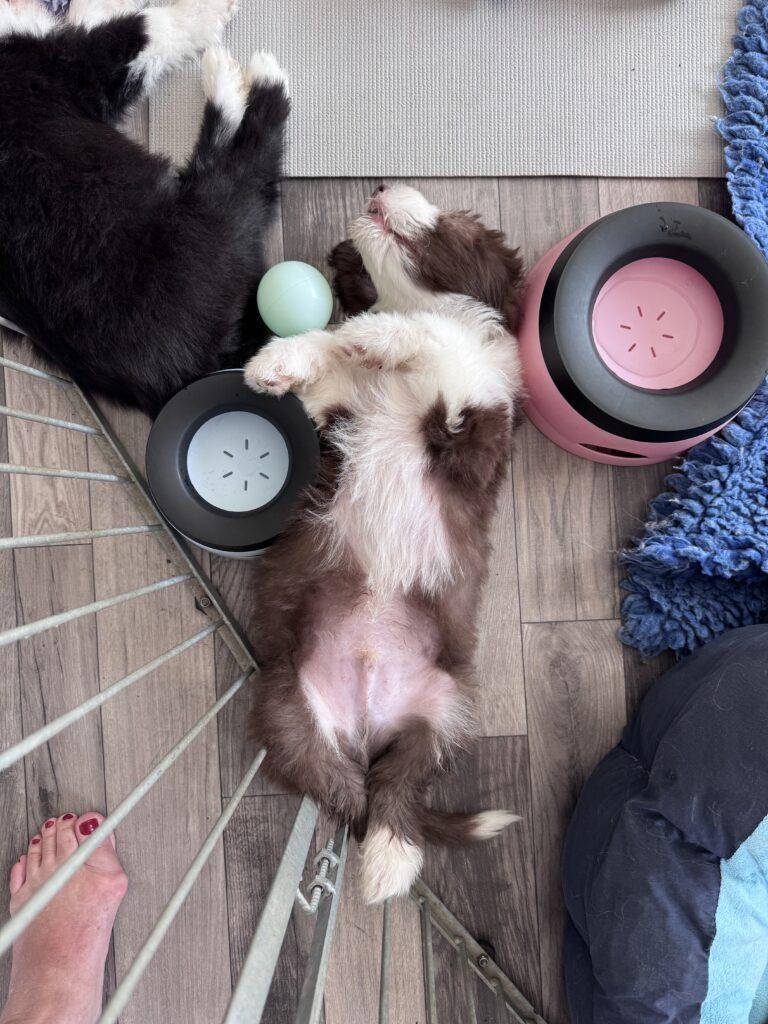 Heute starten unsere Welpen in die sechste Lebenswoche und man kann es nicht übersehen: Die wilden Zeiten haben begonnen. Obwohl dieser Wurf tatsächlich tiefenentspannt ist und uns mittlerweile auch bis Morgens um acht schlafen lässt, sind aus den kleinen Babys echte Persönlichkeiten geworden, die genau wissen, was sie wollen – und was nicht.