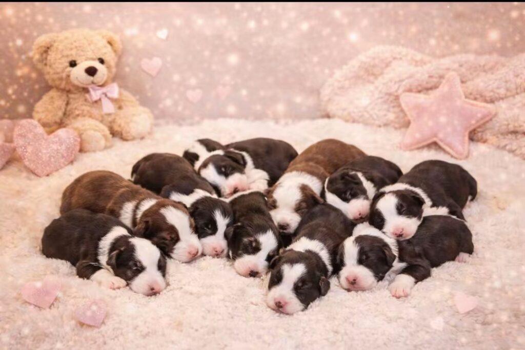Die Mama kümmert sich liebevoll und souverän um ihre kleinen Wunder, die nun gemeinsam kuscheln und ihre ersten Lebenstage genießen. Die Welpen zeigen bereits jetzt wunderschöne Zeichnungen und wirken rund um zufrieden und entspannt. In den kommenden Wochen werden sie bei uns behütet aufwachsen, viele neue Eindrücke sammeln und sich Schritt für Schritt zu kleinen Persönlichkeiten entwickeln. Hier sind die ersten Wochenfotos der kleinen Wunder. Viel Freude beim anschauen.
