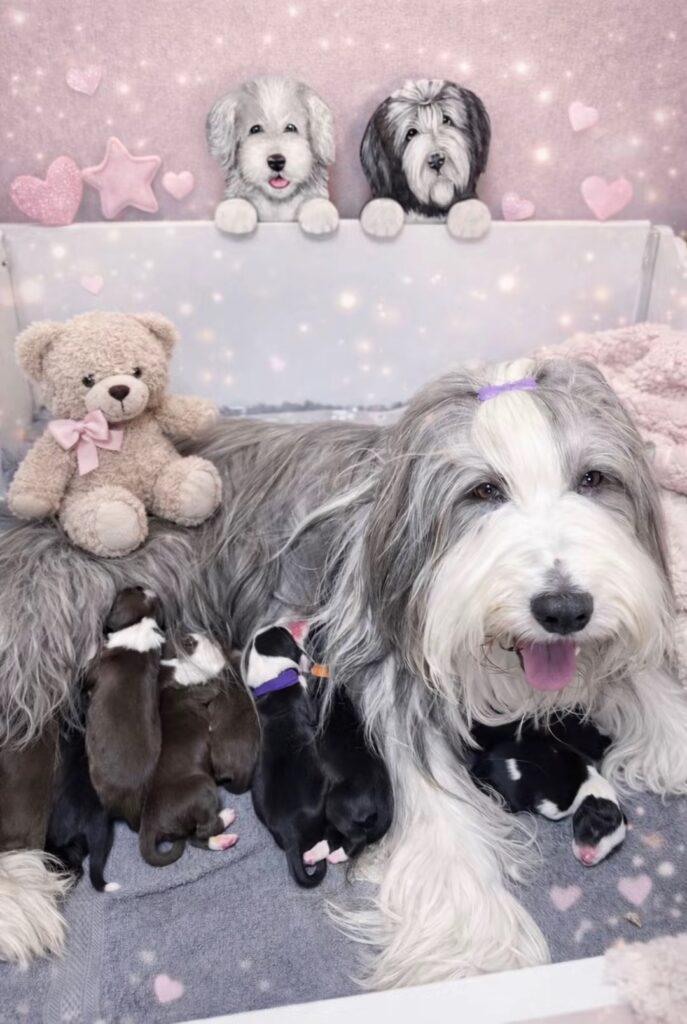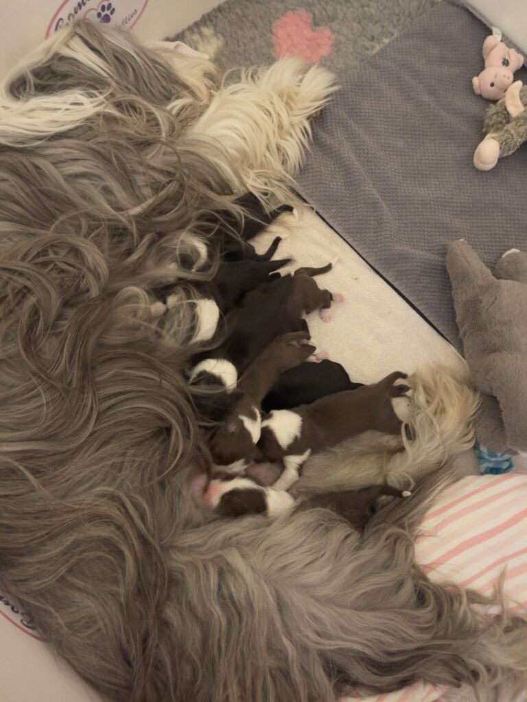 Mit großer Freude dürfen wir verkünden, dass unsere Bommbinis Darin Dream of my Soul Nachwuchs bekommen hat. Es sind sieben Hündinnen und drei Rüden.Leider hat es ein Rüde nicht geschafft,deshalb fehlt Nr.3.