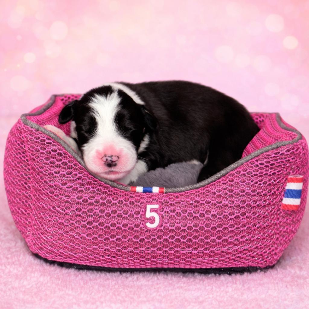 Die Welpen starten nun in ihre fünfte Lebenswoche- eine spannende Zeit voller Entwicklung und Entdeckerlust. Die Kleinen werden nun täglich sicherer auf ihren Pfötchen.Sie laufen, rennen,spielen miteinander und messen ihre Kräfte in ersten spielerischen Raufereien. Dabei lernen sie ganz nebenbei wichtige soziale Regeln und den respektvollen Umgang mit ihren Wurfgeschwistern. Ihre Sinne sind nun vollständig entwickelt : Sie hören und reagieren auf Geräusche ,beobachten ihre Umgebung neugierig. Auch der Kontakt zum Menschen gewinnt nun mehr an Bedeutung. Sie suchen schon bewusst die Nähe und freuen sich über Streicheleinheiten. Sie zeigen nun auch schon individuelle Charakterzüge. Erste Unterschiede im Temperament sind schon erkennbar- von ruhig und bedacht bis lebhaft und abenteuerlustig.