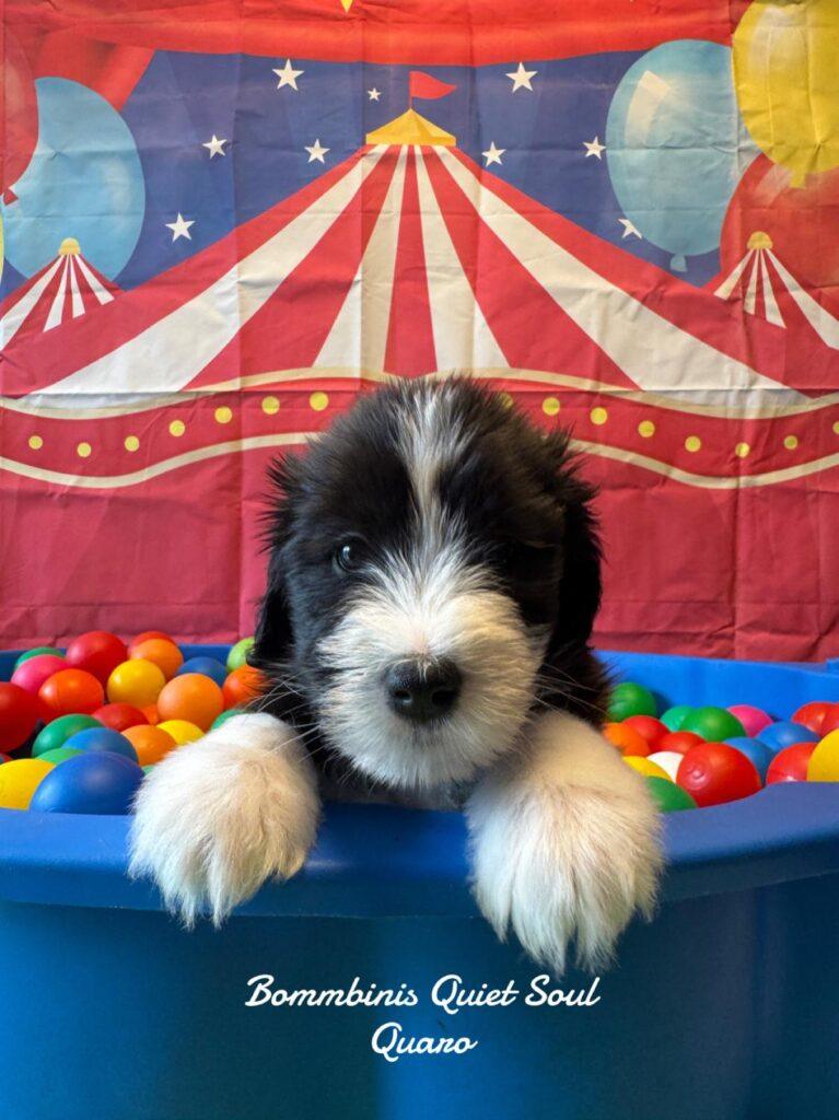 In der siebten Lebenswoche passiert bei den Welpen schon recht viel. Der Tierarzt kommt zum impfen und führt die erste Untersuchung durch.Die ersten Ausflüge nach draußen, sofern es das Wetter zuläßt. Im Körper wird nun alles fester zu wachsen. Kleine Bewegungen werden bewusster. Da wird auch schon mal zum Sprung angesetzt. Jede Erfahrung ist ein Schritt nach vorn. Da wird in die Pfote gezwickt, am Schwanz festgehaltenen,den Bruder/die Schwester bedrängt. Doch sobald der andere eine Reaktion zeigt, wird los oder abgelassen. Das alles gehört jetzt zum Lernprozess.Diese Woche ist eine besonderer Meilenstein auf dem Weg zum Wachstum und zur Entfaltung. Und hier sind sie die Rosenmontagsbeardedcollies.